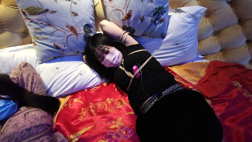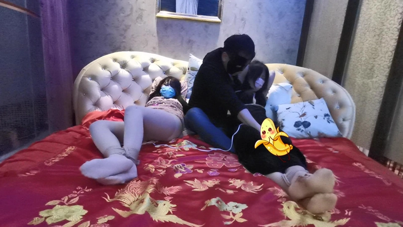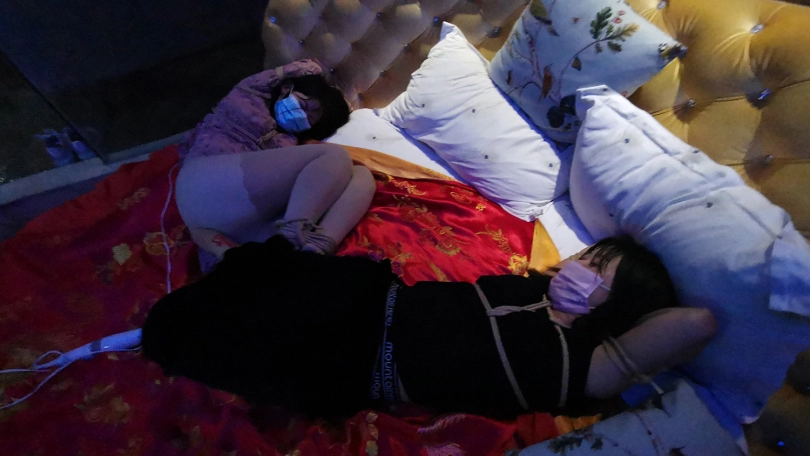 捆绑好后让她们都躺在床上,棒子挑蛋轮番伺候,双方彼此用脚攻击对方脸部。。