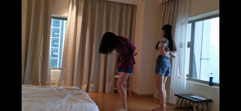 新妹子丹丹和上次约的婉婉逃脱比赛。都是172以上的大个子。