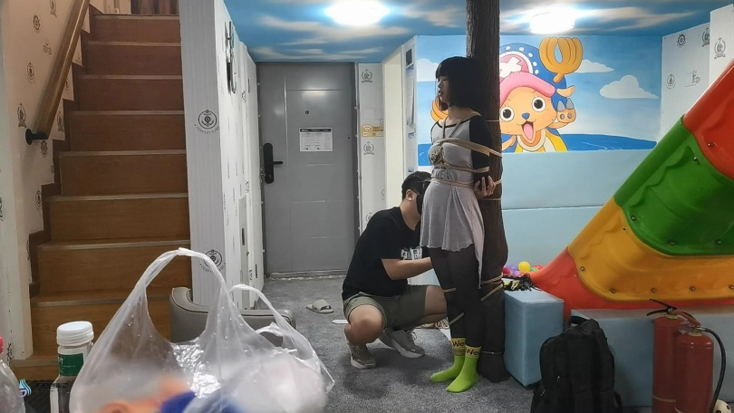 【JS】【激辣】黑丝棉袜单腿吊丝袜堵嘴胶带蒙眼抚摸TK