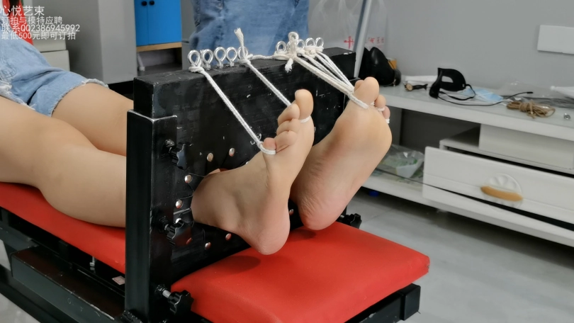 身着牛仔热裤白衬衫的青春少女欣然,被某知名恶人抓到,捆绑在了某恶人设计定制的老虎凳上面,每一根手指脚趾都被绳索束缚起来,完全没有挣扎的余地。接下来迎接她的是什么呢?当然是酷刑的折磨。