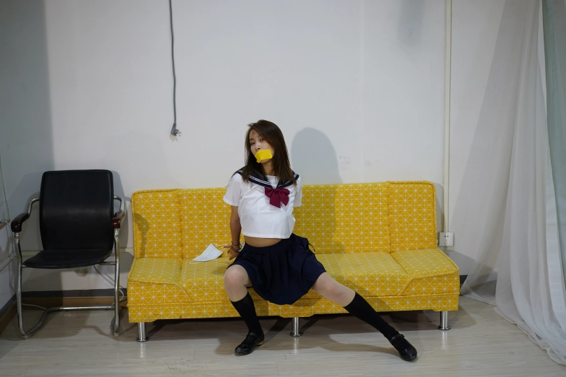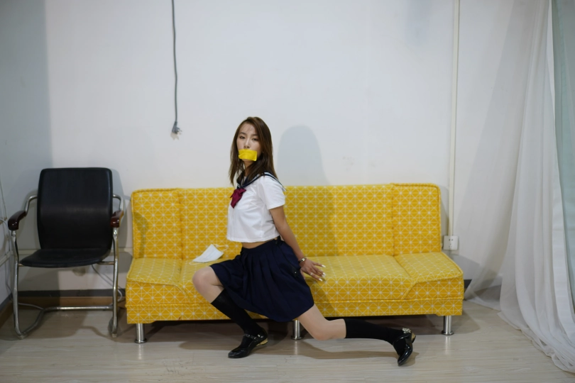 萱萱在家跳舞锻炼,随后被劫匪入室劫持,强迫肉色丝袜堵住嘴巴,萱萱被劫匪堵嘴,然后用黄色胶带贴上美唇。(上一次的朗诵给了灵感,不如跳舞?封嘴后来点才艺,性感热舞,简直...)