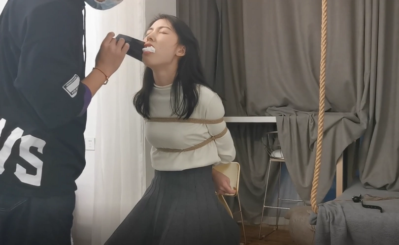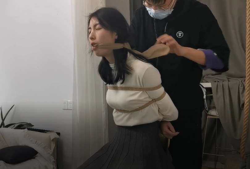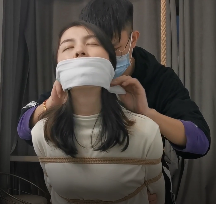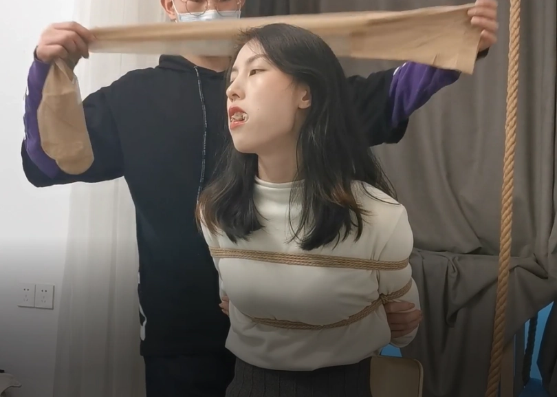 模特莞尔OL装,现场穿黑丝,无剧情堵嘴放置挣扎,除了常见的丝袜堵嘴、胶带堵嘴,这次还特别尝试了一下类似Dominic Wolfe爱使的多重堵嘴,最后以驷马收尾。