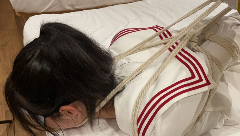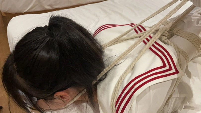 先是被直臂捆绑,大腿和脚也被绑了起来,瘦瘦高高的样子实在可爱