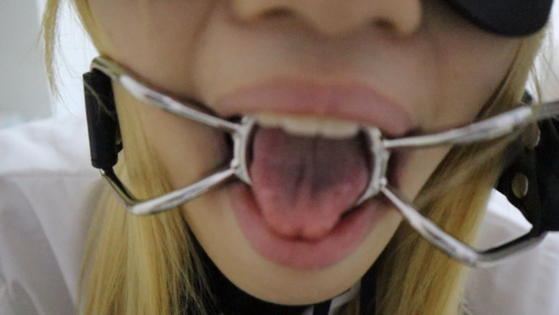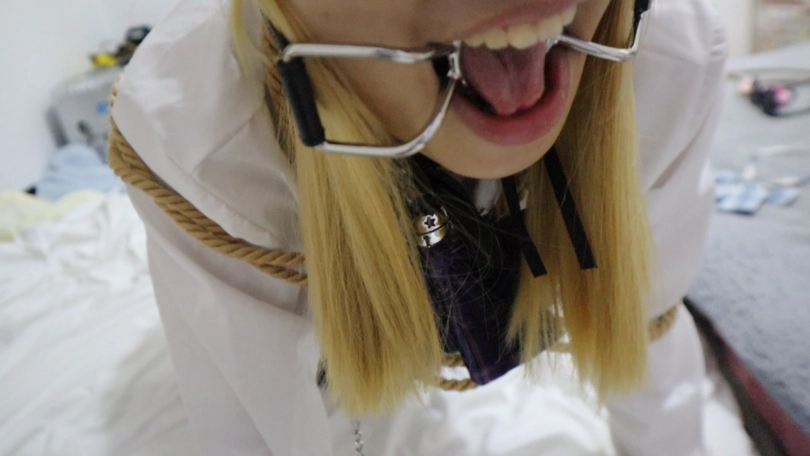 然后开始新一轮调教 让欣欣做出小母狗的样子直接用口枷做项圈,开始遛这只高冷的电竞美少女奴隶,