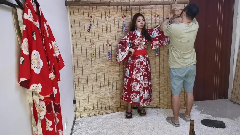 【JS】曼文 和服双手吊捆绑 手部变色 口球堵嘴