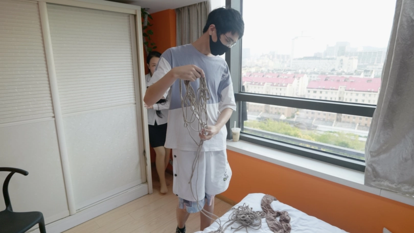 小伙被女S迷晕后,被换上了全包紧身衣,女S先是脱掉一件身上的丝袜把小伙的头包住,再脱掉一条丝袜把他包成木乃伊,这时候小伙也醒了,女S就拿之前被小伙拿来包头的丝袜睡袋把小伙装了进去,向他展示了丝袜睡袋的正确用法。绑完人后女S出去休息一下,结果小伙打算逃走,但是被包起来了自然无法逃脱,于是被抓回去后,女S又给他加固,上了好几条皮带。最后小伙也放弃逃脱了,安心做女王的玩具陪她看电视,没想到女S最后拿出了她的振动玩具……