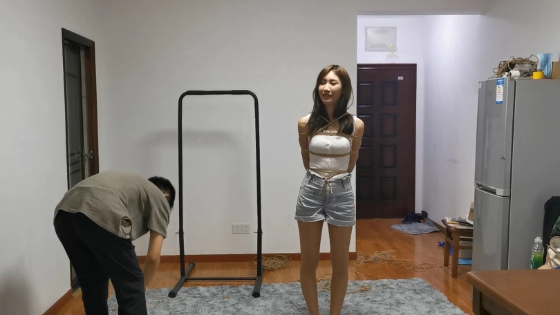 高颜值的新疆维族美女粒粒(雪娜),身上有一种别样的异域风情,1米7的身高柔韧性也非常好,可以完成很多极限的捆绑。这次也专门为她设计了极限后手观音紧缚放置的挑战,然后再老规矩模特独自放置挣扎寻找逃脱可能。后手观音可以说是紧缚里最严厉的束缚了,不管柔韧性多么好的模特被绑成了这个姿势无论怎么挣扎都是无效的。不过妹子嘴巴太小,用稍微大一点的口球都带不进去,用小号的口球也塞得满满的。
