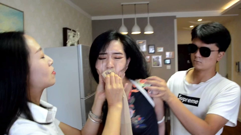 王仟雅在单位总和文清作对,感到不满的文清带着自己表弟到王仟雅家对其捆堵折磨,文清当着王仟雅的面脱掉自己腿上穿的一条肉色连裤丝袜,把这条原味脏裤袜一点点塞入王仟雅口中,令其苦不堪言。