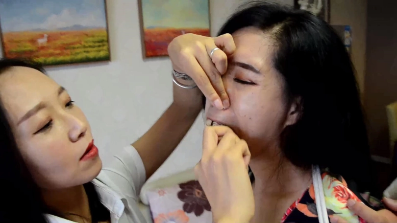 文清与自己表弟配合将王仟雅嘴外封上紫色强力胶布,再用黄色胶带与黑色弹力自粘绷带一圈圈缠绕封紧,之后文清故意拿手机给王仟雅拍了几张照片,还故意拿给她看进行羞辱,王千雅拼命冲文清瞪眼,文清遂伙同表弟拿黄色胶带和黑色自粘绷带一圈圈把王仟雅眼睛封上,彻底剥夺她看东西的权利。