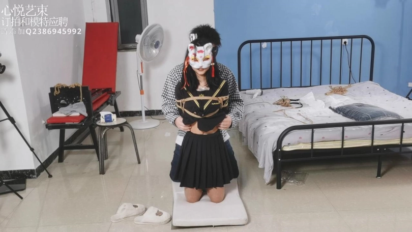 【心悦艺束】肉丝可爱小狐狸被日式后高手束缚在铁柱子上面,吊起双脚挠脚心,腋下,腰部。小家伙是真的很怕痒啊hiahiahia