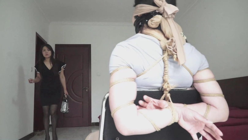 (曹凤打开门,看到了被五花大绑在椅子上,还被堵嘴蒙眼的刘倩,短暂的慌乱之后,她拿出电话正准备报警,这时她也认出了这被严严实实捆绑的不是别人,就是自己丈夫在外面的情人刘倩,报警还是不报天使还是魔鬼?她陷入了抉择,想到自己的丈夫的精力成天在这个女人身上,最后一咬牙她放下了手机!走向了这个已经经历了一次劫难的女人,而此时的刘倩也感觉到了来人,正呜呜呜呜的请求帮助!)