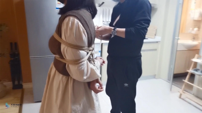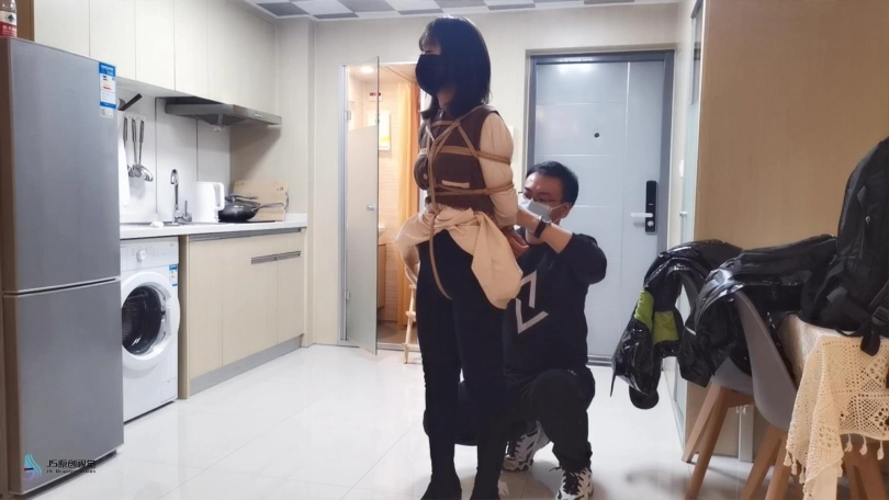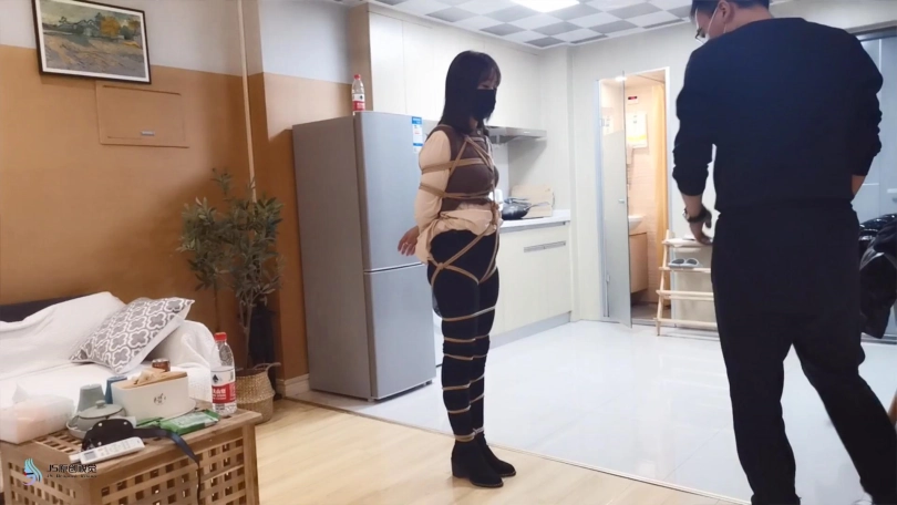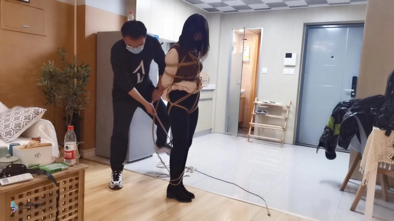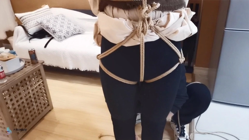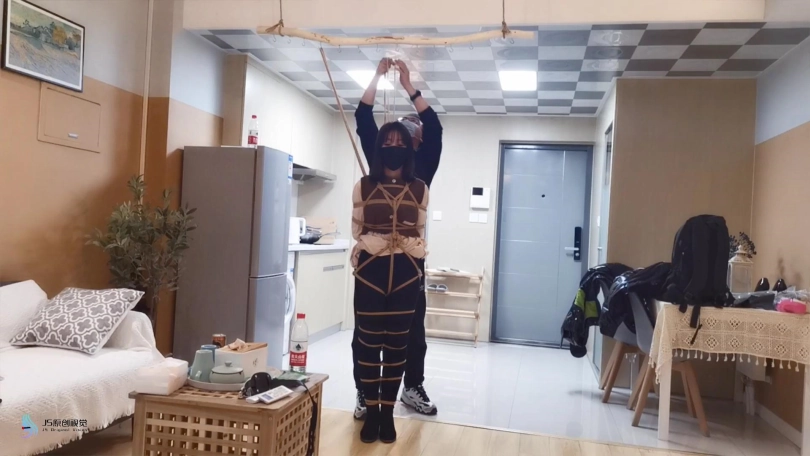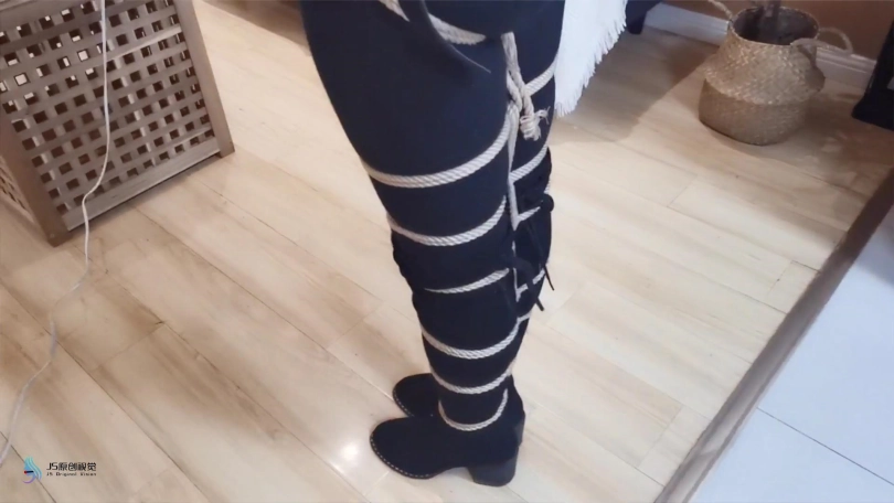 穿着黑色的长靴,上半身日式捆绑,[X_X]绑上股绳,腿部用绳子一圈一圈的绑起来。将身体掉在上方的木棍上。再将快乐棒顶在她的敏感地方,再持续不断的输出下,凌熙很快就达到GC,开始呻吟起来。