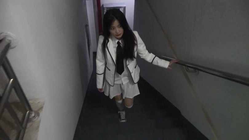 小胡回家(拍摄一段小胡从楼道走回家门口的视频),在开门的时候,富豪突然出现,用刀(枪)指着小胡的腰。
