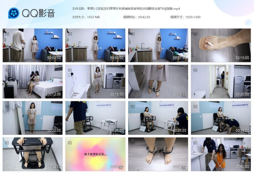 【趾间艺束】家庭主妇果果杀夫被捕 审讯审判处决 挠脚挠全身TK 手铐脚铐脚趾铐