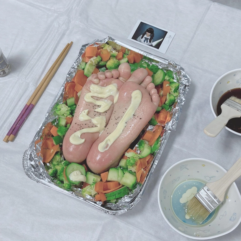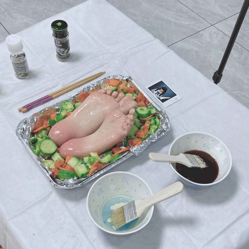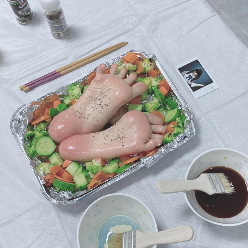 为了保证最棒的用餐体验,本店采用最新的保险技术,顾客您看,这双足底是鲜活的哦(戳),无论你做什么 ,足底的主人都会100%感受到呢!