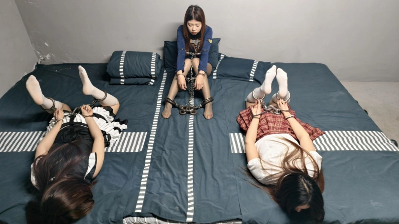 主人公可可经朋友推荐来到求奴岛体验中心,她对即将到来的体验充满好奇与期待。然而,当她被带重镣手脖连铐关起来等待同伴冉冉时,她感到束缚感强烈并开始感到无聊和烦躁。不久,冉冉也被带来并同样被手铐脚铐束缚。两人开始等待其他人的到来,期间两人因被束缚感到不适而交换位置,但JC突然出现,告知他们因为逃跑的缘故,他们需要被再次束缚一周,二人在笼子里和被绑着。对此感到震惊和不满,但只能接受现实。在接下来的日子里,他们试图适应这种被束缚的生活,并讨论了各自的过去和喜好。最后JC也因为犯错被关进惩戒室和二人一起。三人被重镣加身,驷马铐起来,他们的困境和痛苦逐渐加剧。