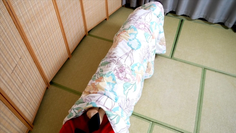 在用棉被包裹住全身...