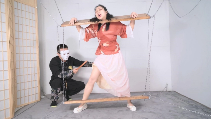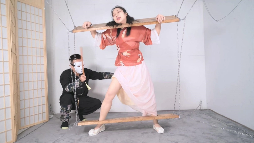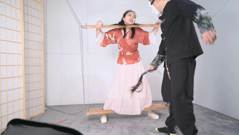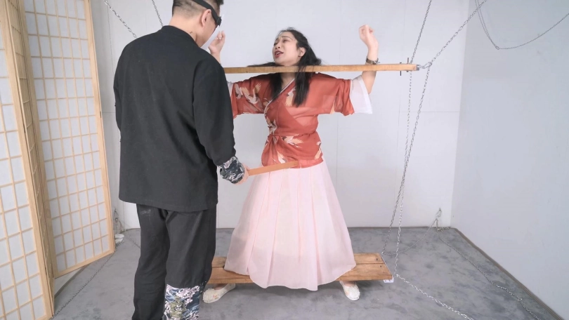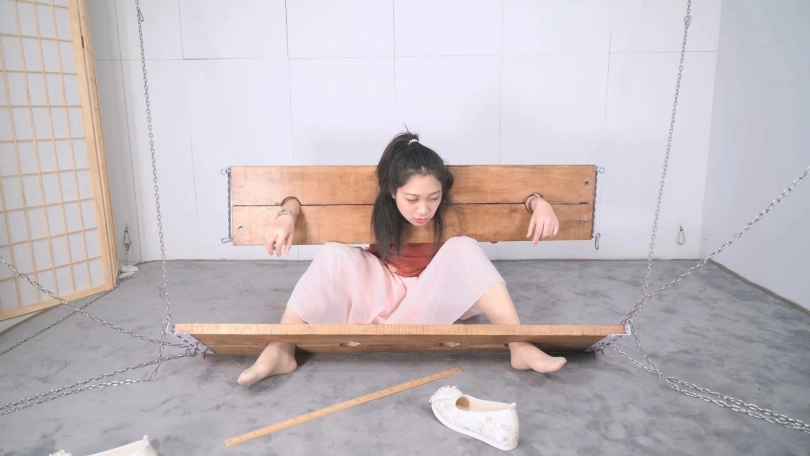 › 【撒琅制造】绳模沐小雨古装木枷固定,即兴发挥小剧情--戒尺、鞭打、TK