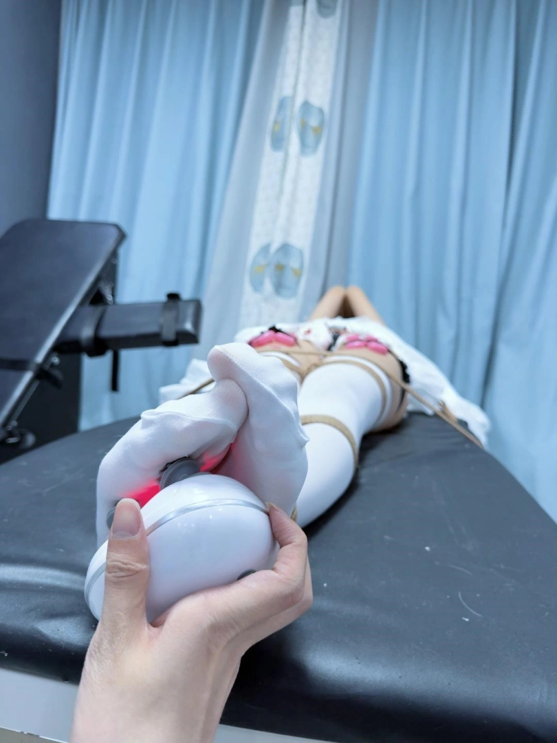 道具:口罩内带了大口径口球,平躺式刑床、全身多道绳子束缚、大量粉蛋、八爪鱼按摩仪、全身TK