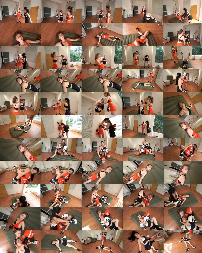 Emma (Red) vs Hana fights each other in a boxing match. Whoever scores 3 knockouts first will win. The girls fighting with their best but eventually there is only one winner, and she is Emma.