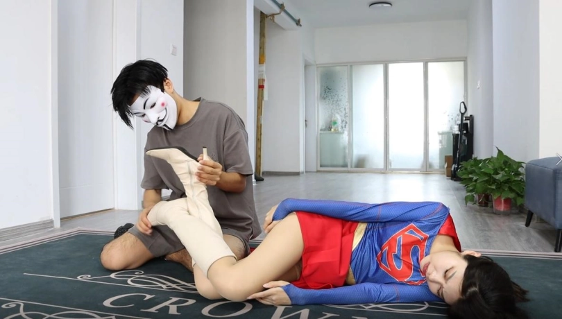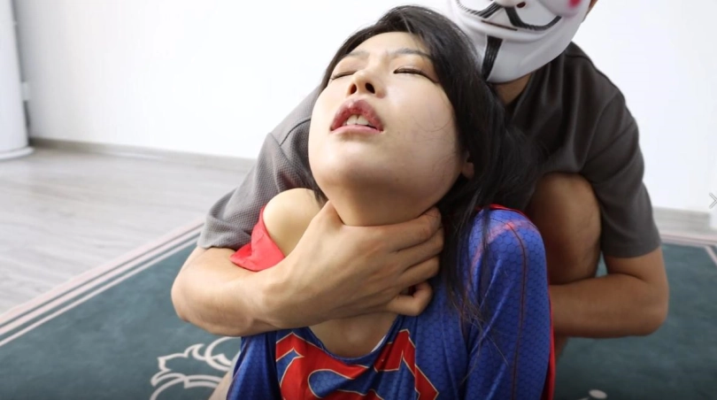 女超人米娅惨遭偷袭,被带回小房间一顿殴打。