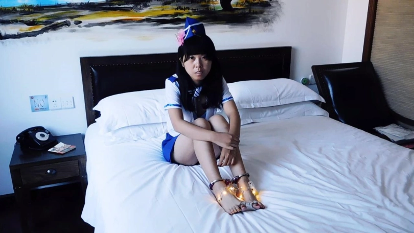 妹子来应聘脚模,摄影师要求坐在床上,脱下她的鞋袜。摄影师观察妹子的双脚,和妹子聊天。摄影师拿来脚、脚趾铐,给妹子戴上,脚腕上绑上彩灯。妹子一脸困惑。摄影师观察她被锁上的脚,妹子有点害怕。摄影师要求妹子在床上活动一下双脚,妹子照做。摄影师要求妹子下地走几步爬几下,妹子照做,却觉得很奇怪。最后,摄影师认为妹子可以,通过面试。然后原形毕露,拿出手铐锁在后面,腰上锁上链子,手铐连接在腰上。妹子这才意识到遇上变态了,大喊救命,但却挣脱不开。摄影师疯狂挠妹子脚心。妹子很痒,很难受却也有点舒服。妹子在床上挣扎,一直喊变态。摄影师给妹子带上口球。
