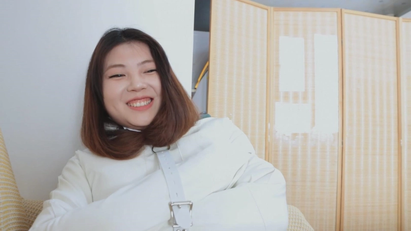 采用了拘束衣+足枷的新式玩法,足枷这个东西还蛮贵的,而且老哥用的时候还用反了,但并不影响整体效果,我用了很多道具,包括按摩油,经络刷,金属痒痒挠、金属滚轮和电动牙刷子之类的,雅倩的大脚板估计得将近40码了,TK起来非常过瘾,而且反应也颇为可爱,后来又给她戴上了口球,呻吟声更加诱人,新年期间,看点这样“欢乐”的作品我觉得还是蛮不错的。