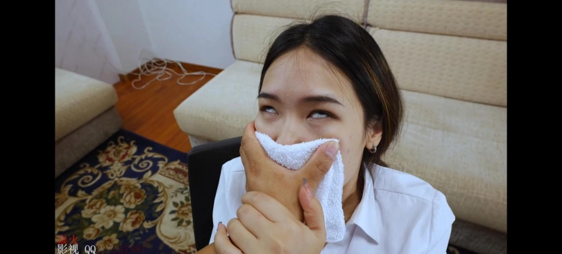 美女教师童谣下班后回家坐到沙发上揉脚,被坏人入室迷晕玩弄,全程翻白眼,反复迷晕玩脚。