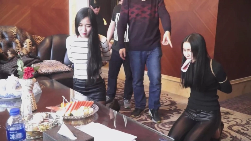 两位大佬请来的高手果然不是盖的,一下子就把两位出老千的美女逮个挣扎,该怎么惩罚她们