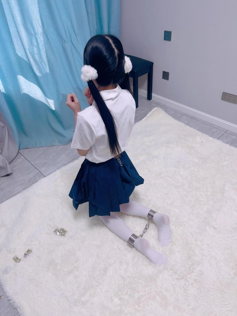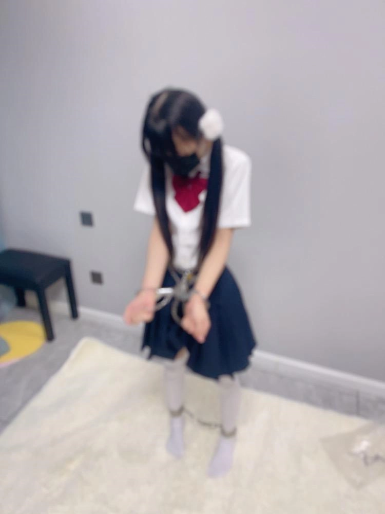 jk白丝双马尾,镣铐是严丝合缝紧贴皮肤的不锈钢脚镣,手铐是筒铐。