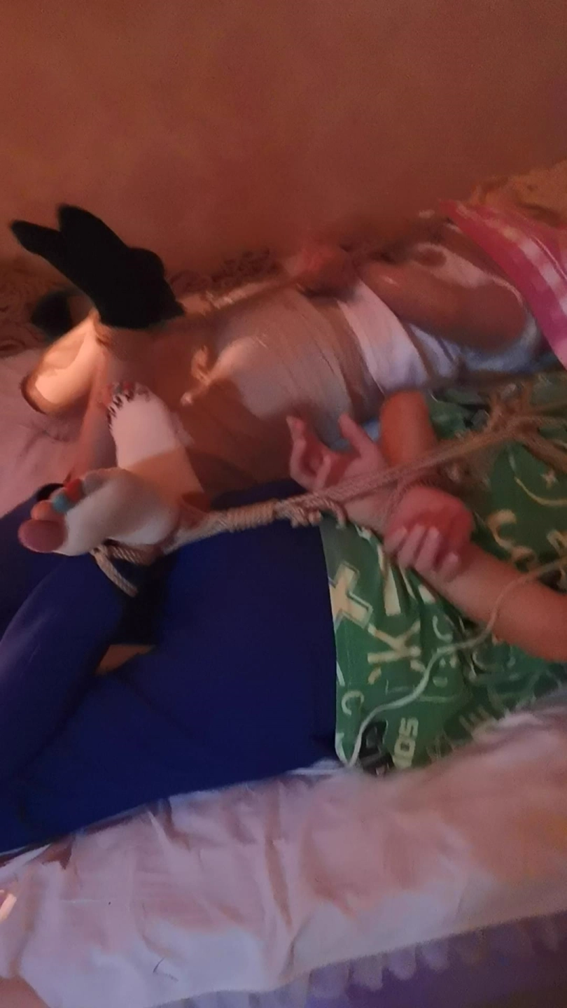 一个下面用棒棒刺激,一个裆里面塞着跳D刺激着。