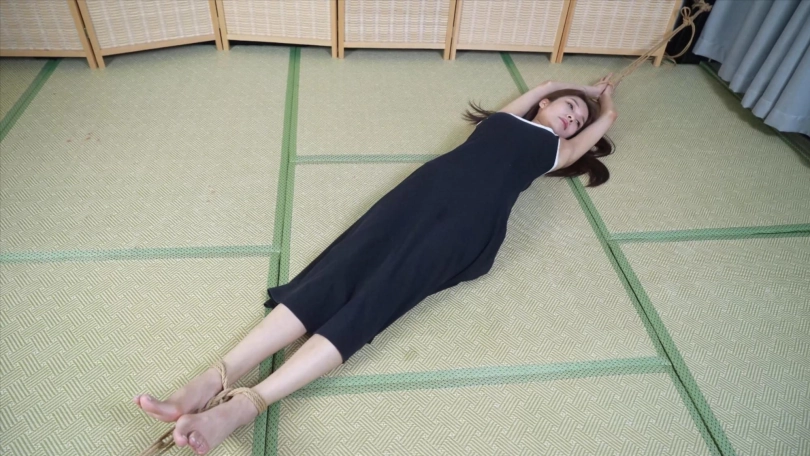 最后把她的双眼蒙上,嘴巴用胶带粘住,提升她对身体的感知能力