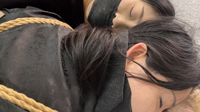 原来J被怀疑是内鬼,因而被囚禁审问,她说那天与K接头后突然遭人暗算,自己和K都被驷马捆绑起来,并被特制的丝袜套头,很快就会昏迷过去。于是她们开始合作尝试脱缚,最终J成功解缚,然而当她试图为K解缚时却发现她已经撑不住了。