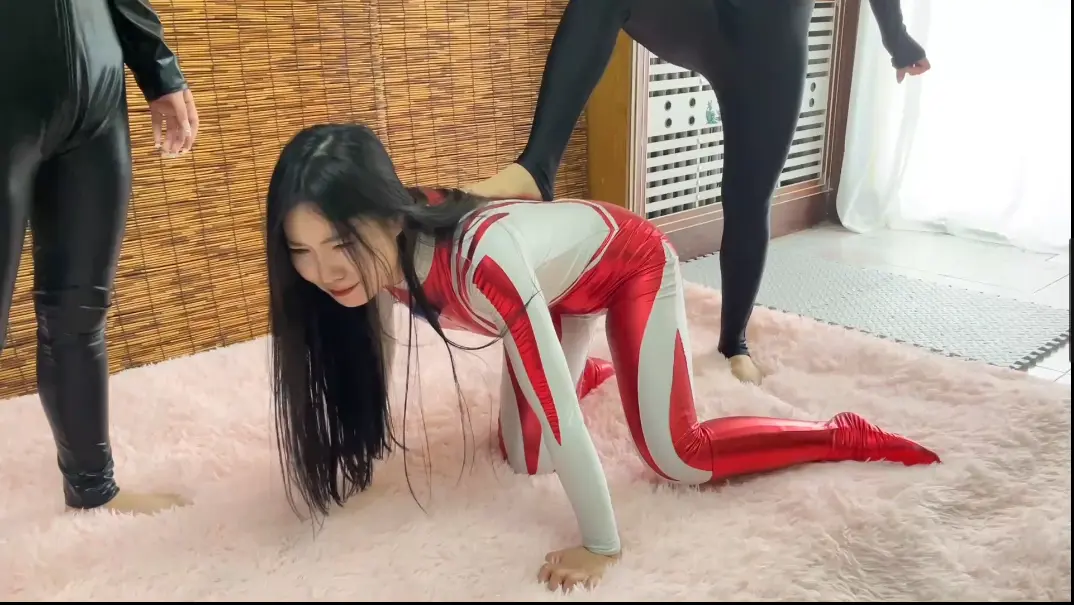 女奥特曼变身拯救世界与女怪兽战斗,终于困难战胜女怪兽,没想到新的女怪兽出现,本已经没有能量的奥特曼不敌,被迫变回原型,双女怪兽羞辱女奥特曼,女奥特曼为了再次变身与怪兽妥协,不得已脱下自己的丝袜,怪兽把白色液体吐在奥特曼的丝袜上,被迫奥特曼舔下,女奥特曼再次变身,却已经不是两位怪兽的对手,怪兽骑在奥特曼身上拿出武器桶向奥特曼的后T.