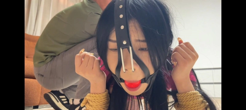 韩玉,琪梦演技很好,体操服肉丝脖子戴上电击项圈,戴上链子牵着她爬几圈,打开电击项圈,女侠被电的颤抖的爬,很好不错,嘴里塞上丝袜戴上马具口塞。鼻钩戴上可以松一点,又开始一轮折磨电击鞭打加疯狂挠脚心,腋下各种折磨。自由发挥电击挠脚心穿插定住折磨,解开折磨。折磨十多分钟左右,女侠慢慢坚持不住摊在地上,坏蛋也玩累了,定住她侧躺放置。把她嘴里丝袜和口塞鼻钩都拿下来,女侠活动下嘴嘴里大骂坏蛋,模特可以发泄着骂几句自由发挥,坏蛋拿来臭丝袜先闻下,唉真臭然后袜尖最臭的地方放在鼻子上用胶带固定,一呼吸就能闻到这酸爽的臭味,女侠熏的直恶心用干净的就行,嘴上喊着:好臭不要啊,趁着嘴巴张开,罪犯拿上臭丝袜就塞进她嘴里塞满,女侠呜呜叫唤。头上套上黑色丝袜,用红色胶带在嘴部丝袜外面缠几圈,把女侠眼睛定住不闭眼,女侠的眼睛在丝袜里惊恐的转动特写十几秒。然后戴上红色眼罩和头套,把女侠手握成拳头用粉色胶带包起来,脚也用胶带包起来。然后开启了电击项圈,女侠浑身抽搐挣扎,非常可怜,看你这么痛苦,给你喷上石化喷雾(用水喷雾代替)女侠变成一座石像,罪犯无论怎么挠痒 电击 鞭打都动不了。但是能感受到痛苦。然后把一些拘束道具放到她脚心和背上。神奇母狗雕像制作完成,以后让我放点道具也不错。只留女侠在这儿给个一分钟左右特写,女侠无意识一动不动。
