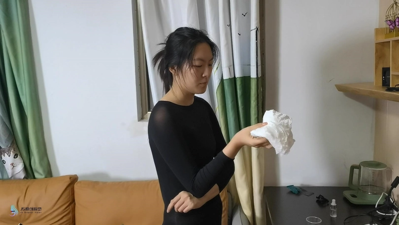 木溪在沙发上醒来,被绑在不同的位置,但没有被堵住嘴。木樨地穿着她原来的衣服,她环顾四周,没有人,她再次拿起氯仿瓶和抹布,这次打开抽屉,没有拿球插嘴。木溪脱下鞋子,放在附近的窗帘下。她默默地跑开,躲了起来。我们看到哈尼穿着紧身衣,准备好氯仿,慢慢地溜进房间。她看到鞋子,准备好了氯仿。