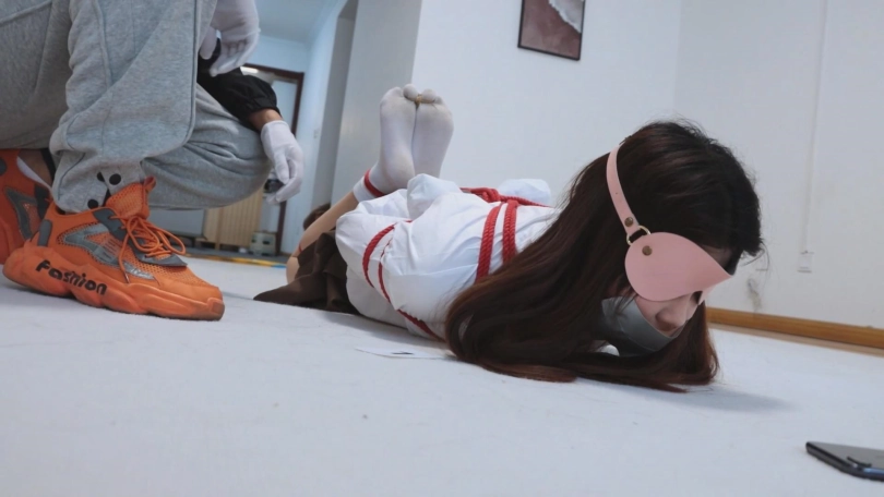 【亮点】新模小于(这是采访时她给自己取得艺名,我不太喜欢用数字称呼模特)文艺风女大雅倩登场+被人发现惨死家中,不请自来的摩尔侦探进行现场勘察+以指压板和镣铐作为切入点,模拟入室抢劫后被歹人逼着做任务+纯白内裤脱掉堵嘴,镣铐加身后在指压板上做游戏(将手铐钥匙吊高,每次做五个蹲起才能跳起一次,每次失败都会被抽打脚底)+最终失败,被折腿紧缚被迫放置在指压板上(模特直言指压板贼痛)。