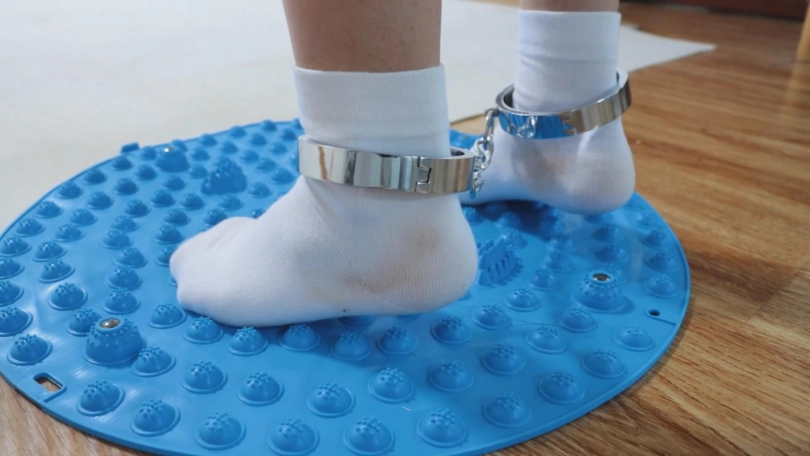第一个推理是从指压板和镣铐进行切入的,自然进行的就是指压板相关的游戏,模特在结束采访时也直呼指压板太痛,再加上要戴着镣铐在指压板上做深蹲,还要跳跃,更过分的是不仅被指压板折磨,还要被老哥抽打脚底板,这一波虐足可谓是拉满,当然,比不上第二部分我对她进行了更全面的TK就是了(请期待一下,在现场勘察的时候各位应该也能看到那个刑具)模特本身不错,我也很推荐各位拍她。