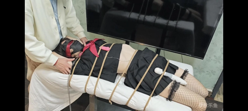 犯错的小m被绑在桌上,想挣扎挣脱,但被制服了,固定在适当的位置,双手拉过头顶绑好系在桌下,她的膝盖和脚也紧紧地绑在桌角两边,玩弄小M细腰,棒棒寸止边缘刺激让小m想发射但又发射不了,脱鞋子挠痒痒,放置,眼睛被蒙上,戴着口罩,小嘴塞着袜子,服装:水手服,网袜,手套。