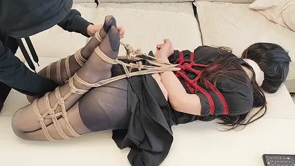 被绑起来的露露用脚玩游戏,不但上身被绑成日式,腿部也用折腿的姿势,既不能移动身子也无法弯曲双腿,玩法是用脚玩游戏,掉血会触发大腿和屁股的电击贴片增加数值。