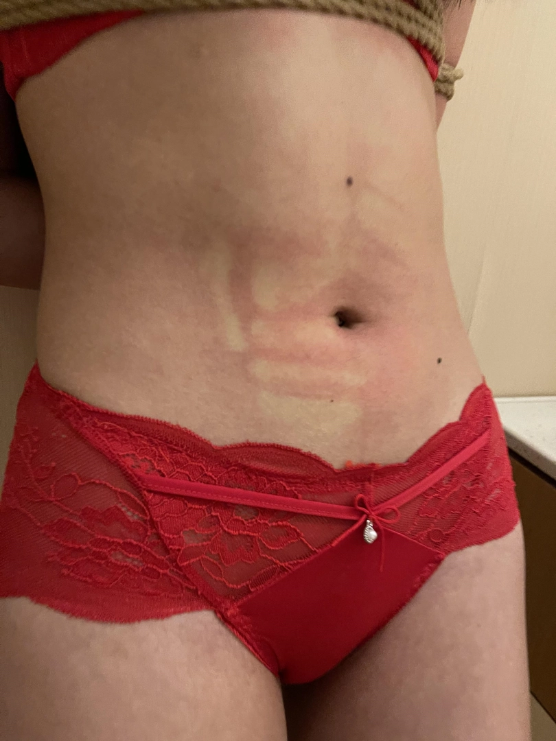 2.这次没有拳套这样的保护性道具,完全是赤手空拳真打。茶茶的肚子都被打的通红,甚至打出了拳印。