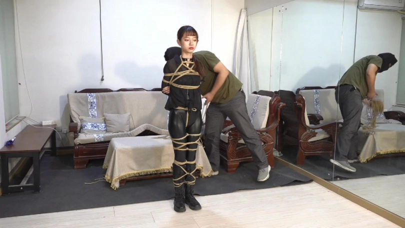 花琪被绑,躺在地上(如图1所示)(拍摄一段花琪被捆绑挣扎的片段)(老男孩捆绑花琪的过程也要拍下来!)