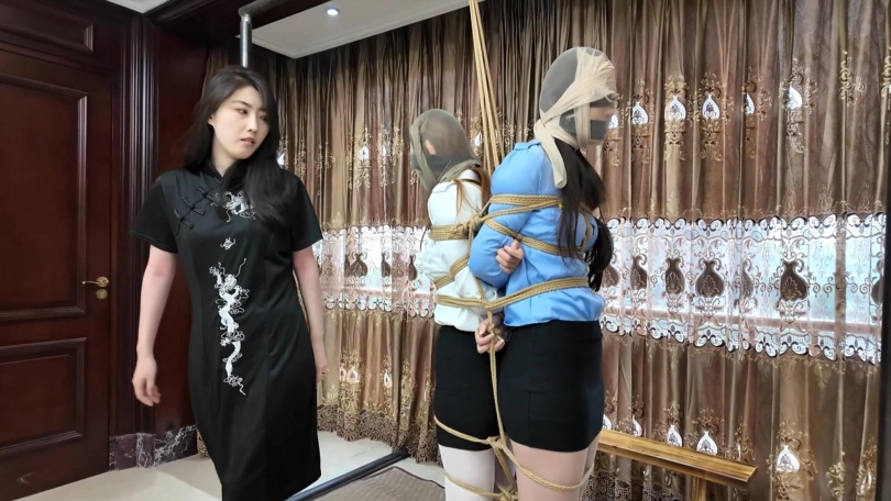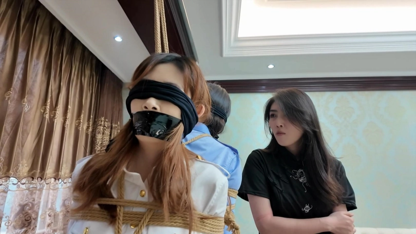 女老总在家中休息睡觉,醒来却发现自己的两个女保镖已经被捆绑封嘴制服,原来是仇家来报复她。所幸对方没有把事情做绝,只是将女老板威胁一番,也捆绑起来。女老总和她的保镖们不断地发出呻吟求救。两位保镖寸步难行,也没有挣扎的动力,只是无谓地发出呻吟声,扭动着身子。女老总奋力挣扎,脚上穿的高跟鞋都掉了下来。