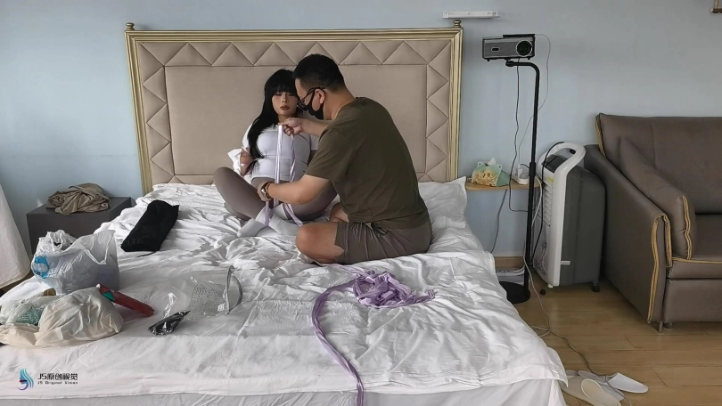 【JS】新模首秀【曼妮】紧身瑜伽服丝绸团缚白袜毛巾塞嘴超粘胶布鞭打恋足棒棒刺激