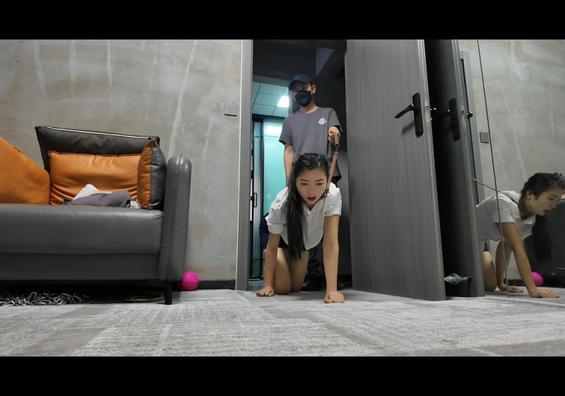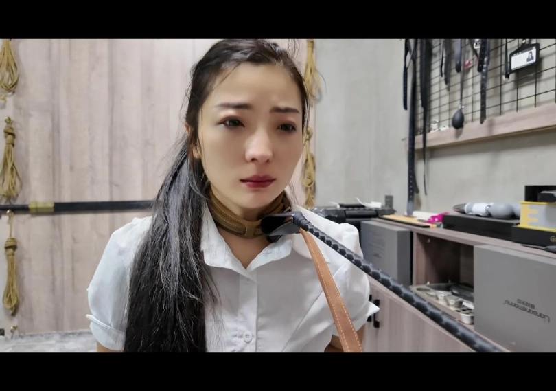 接神秘客户电话,要求把佳佳绑好送到指定调教室,长途,让佳佳轻松一点,给带上手铐,胶带堵嘴,带上口罩 出发,到了指定地方,敲开房门,先让佳佳跪在客厅,等待神秘客户调教,神秘客户对佳佳身材长相非常满意 捏了捏佳佳脸,不错 ,回屋拿出红色麻绳,先把佳佳单腿吊起来 ,不断的羞辱 鞭打,抚摸,折磨,让佳佳羞辱感满满,放下后拧佳佳熊部,一下子就给拧哭了,大声训斥,这是佳佳第一次被调教哭,含着眼泪,继续接受羞辱调教,带上专用项圈,最后绷不住了,趴在地上大哭,哭了一会爬起来继续接受调教,这次被神秘客户牵到一个小房间,房间挂满了形形色色的工具,跪好,接下来不知道等待佳佳的重度调教是什么