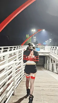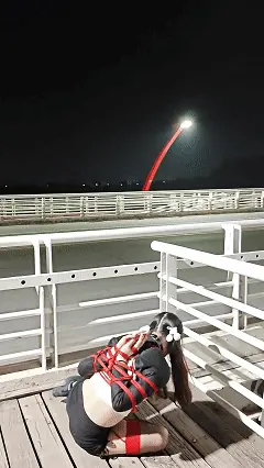 无比羞耻的感觉随着一步步走到了天桥上,突然,郊狼档位调大,露露在天桥围栏边痛苦倒下,全身被捆绑的她暴露在满是车流的街道,展现着