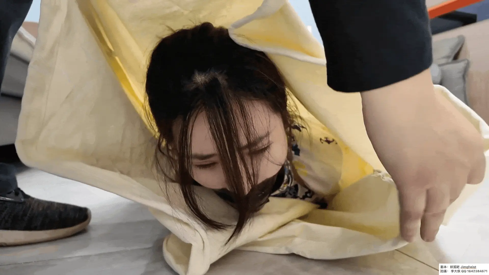 气质温婉的人气女星十一小姐(杨蕊、杨若琳)主演。穿着花旗袍、肉丝、银色皮鞋的某航空姐,下班后走在空空荡荡的地下车库,却不知有不法分子潜伏在此!十一被按在车上胶带堵嘴、反绑双手,千钧一发之际她想起了公司教过的防身术!然而想要就此逃脱魔掌,未免太过天真,踉踉跄跄地跑出几米,十一就被恼羞成怒的歹徒放倒在地,等待她的是漆黑的后备箱、陌生的房屋、勒紧的白布麻袋——当然,过程中少不了一圈圈越来越紧的绳索……