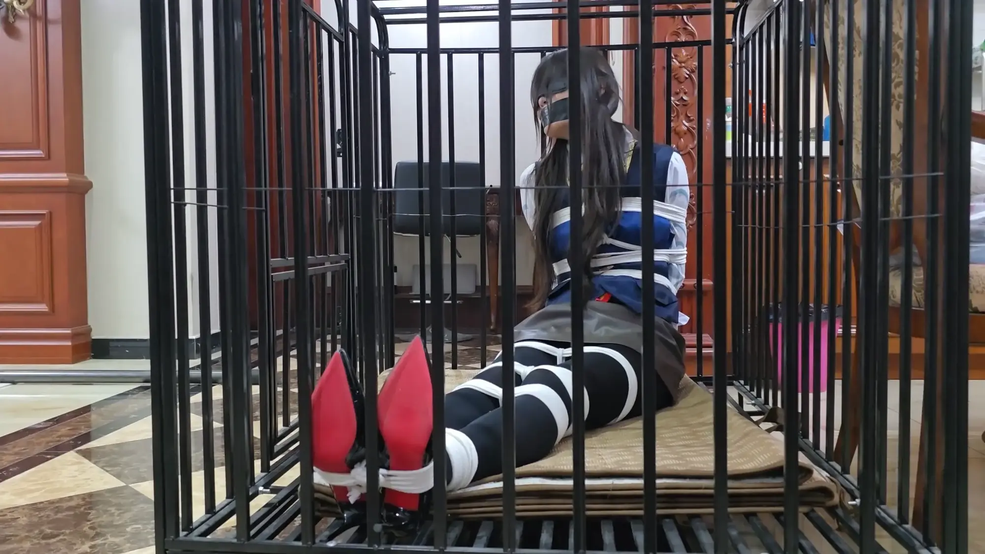 玩完雨琦后,米粒粗暴的把雨琦拖进笼子里说:这是专门为你定制的,花了我不少钱呢,你就好好呆着吧。说完就走了。雨琦眼睛被蒙住了,吓得不停挣扎