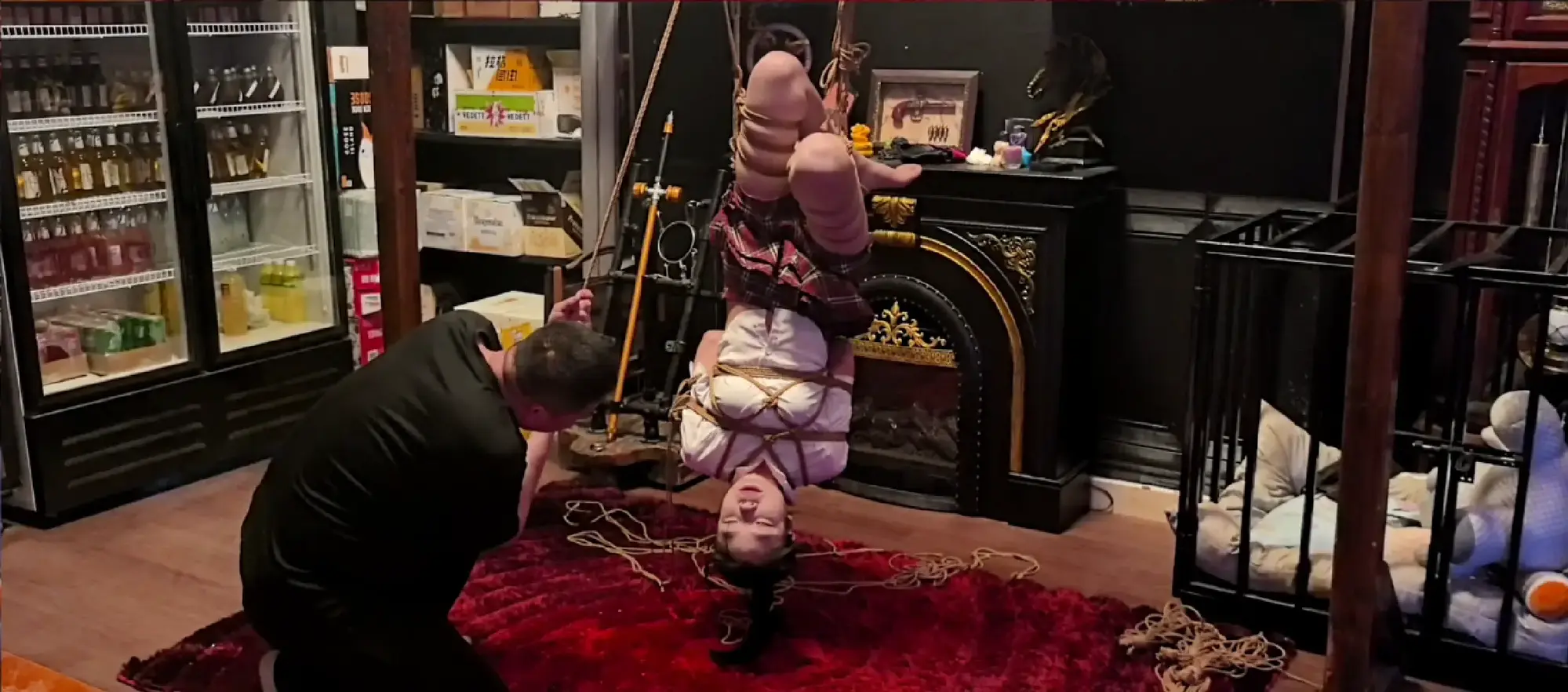 语涵柔韧性极佳 空中悬吊 驷马吊缚 侧吊 倒吊 绳子扯发