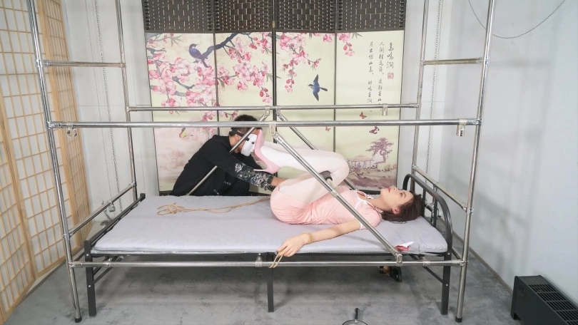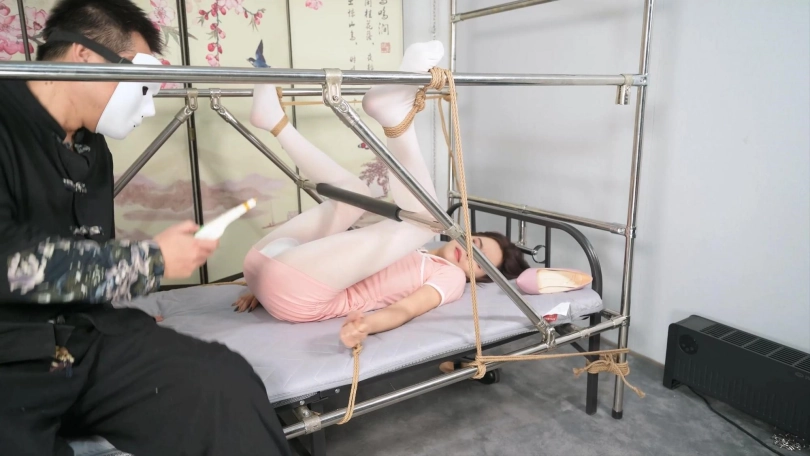 梦想之床该轮到言妍来体验分腿固定,根据她纤细的身材,特别加了一根杆子,这样可以强制把腿翻过来再分腿,比起镣铐,她更愿意用绳子固定,那更好了! 这个姿势,就是放置在那里都赏心悦目,但更想听到她那悦耳的呻吟声,只是需要被狠狠折腾一下才能激发,被这样绑着,她的弱点基本都暴露出来了,好像浑身都是痒痒肉,努力的用束缚的手臂阻挡,点击器的效果更佳,随后的放置就不出所料的有了天然“音效”,放置的时候给了很多特写,还特意用了一些第一人称运镜,让大家都可以沉浸式的感受一下,梦想的妹子被固定在梦想之床中的美好画面。
